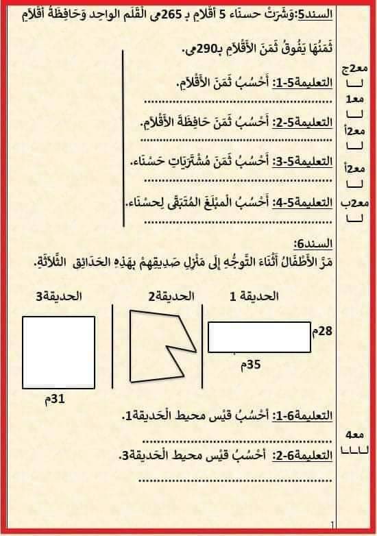 0 الرد على "تقييم في الرياضيات للسنة الرابعة"